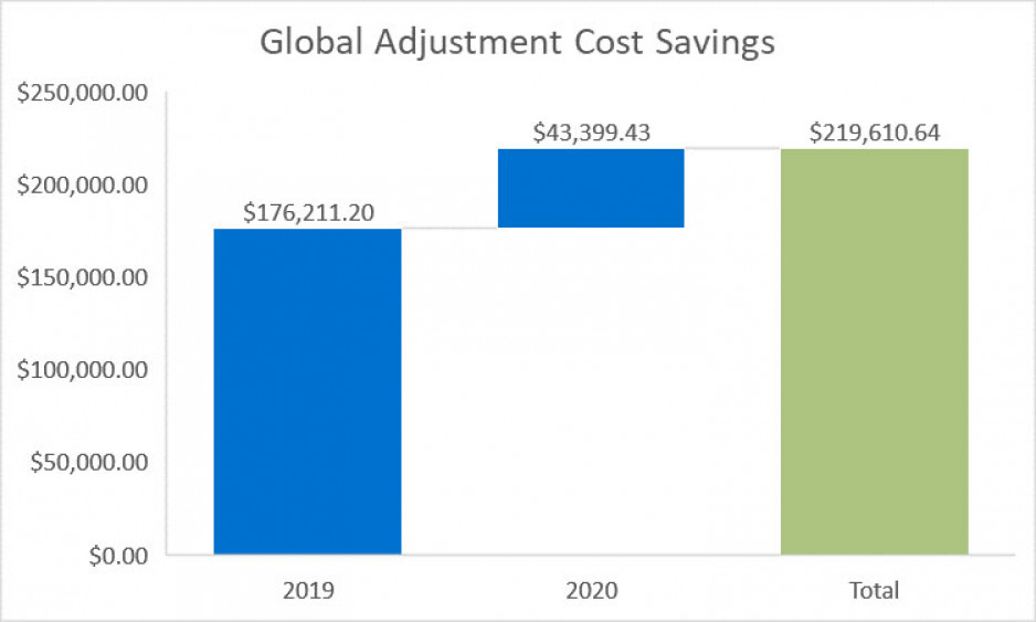 By actively managing and reducing hospital electricity demand during the provincial peak periods, St. Joseph’s Class A cost becomes lower than paying the flat Class B rate, and results in significant annual savings.