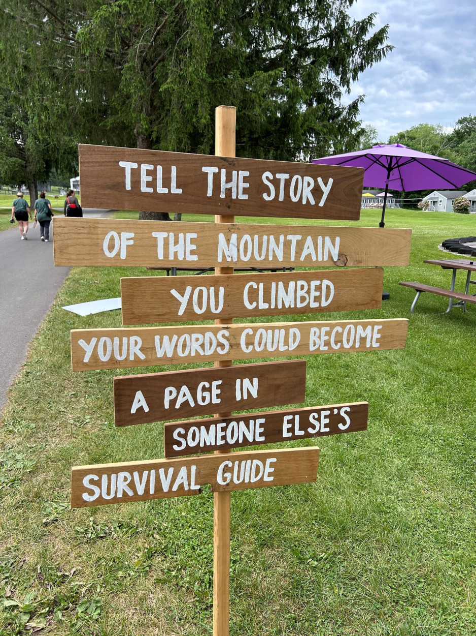 At a gathering of breast cancer survivors – a summer camp of sorts – Stephanie Knowles spotted a wooden trail post sign with the words: “Tell the story of the mountain you climbed. Your words could become a page in someone else’s survival guide.”
