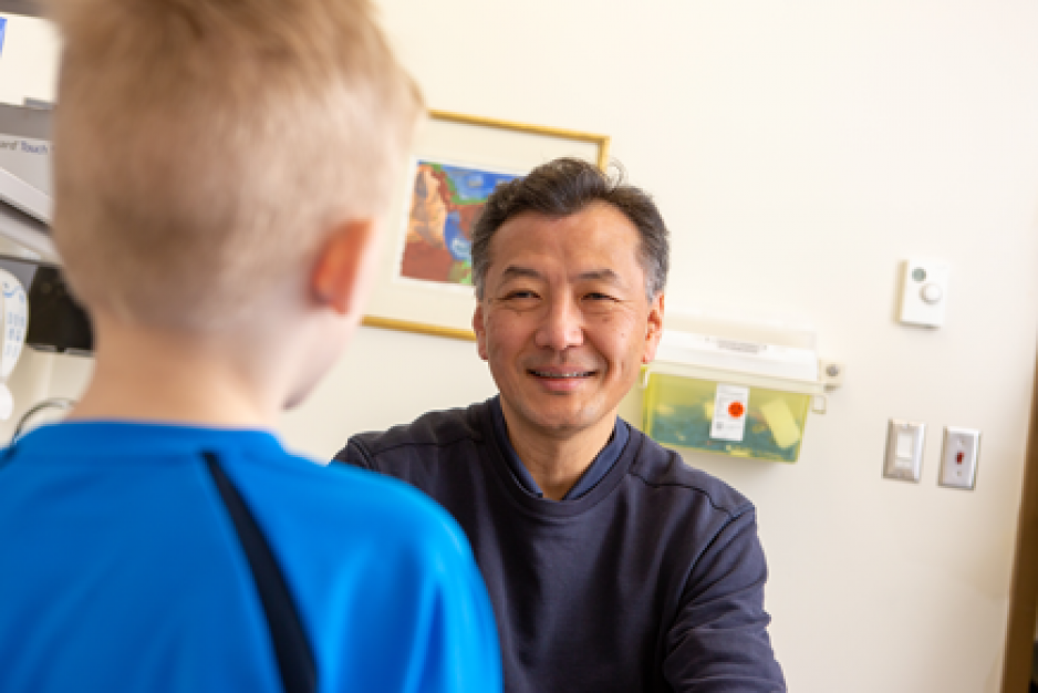 Dr. Harold Kim, Medical Director of the Allergy and Immunology Program at St. Joseph’s Hospital, talks to a young patient being seen for an allergy to peanuts. At St. Joseph’s Food Allergy Clinic, children and adults with any kind of food allergy (referral required) can be definitively diagnosed using the latest, evidence-based approaches.