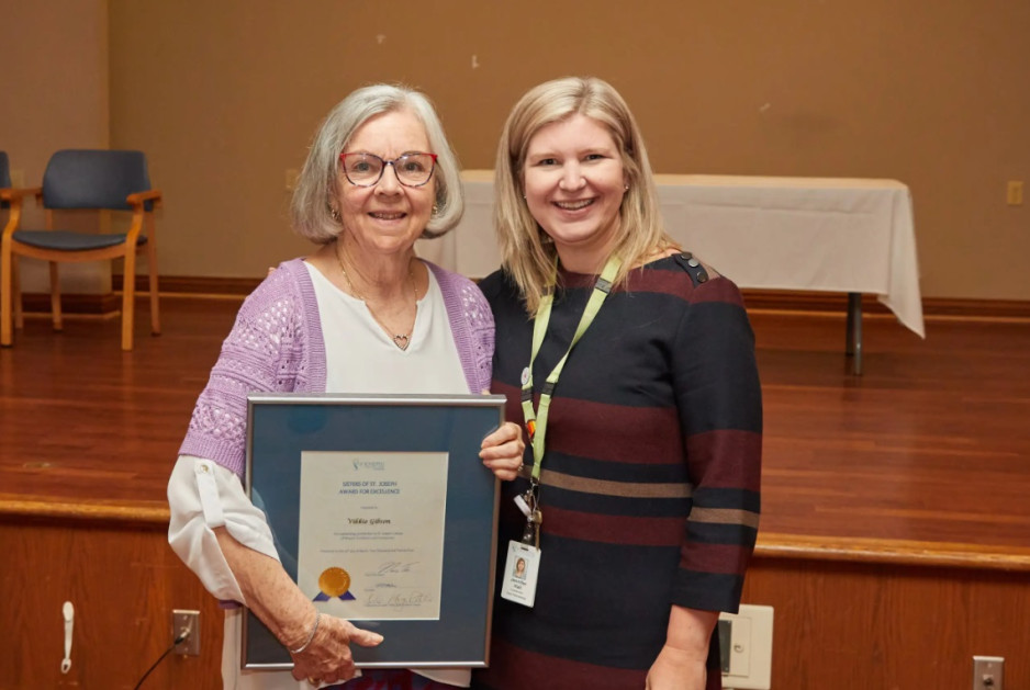In 2024, Gibson was shocked to be the recipient of a Sisters of St. Joseph’s Award. These annual awards are given to St. Joseph’s employees or volunteers who exemplify the values of the Sisters who founded the hospital, including compassion, empathy and sincerity.