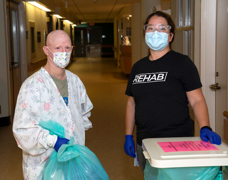 Program porter, Bonnie Haynes partnered with Jenna to bring other patients to scheduled appointments throughout the building. “I took Jenna under my wing... having her help me porter patients to and from therapies. She also took on tasks such as finding the patient’s room, monitoring their schedules, opening doors and manning the elevator. Her confidence and positivity grew so much and the energy she gave to other patients and myself was heartwarming. Her eagerness and willingness to help others is stunning...”