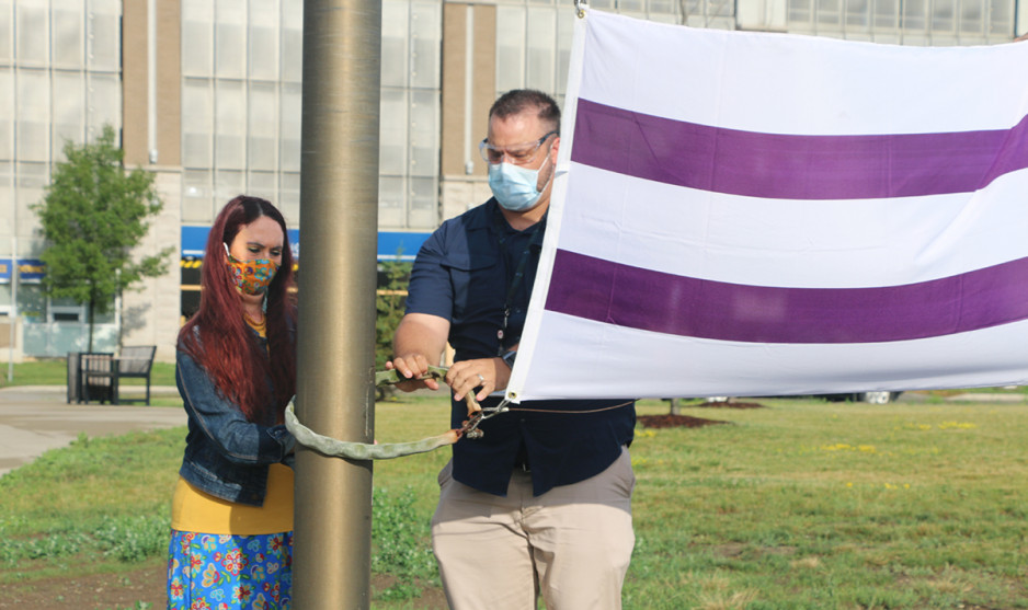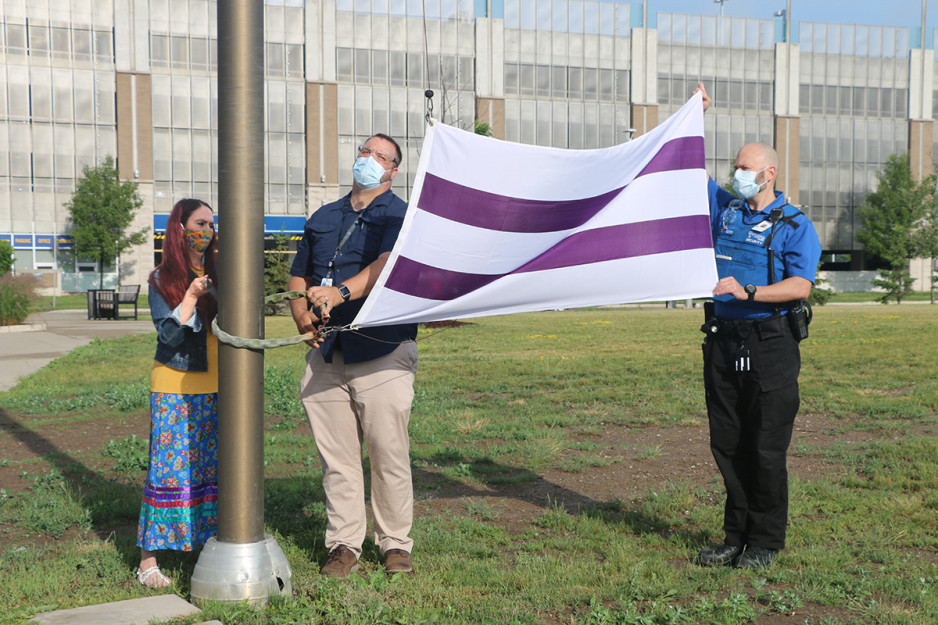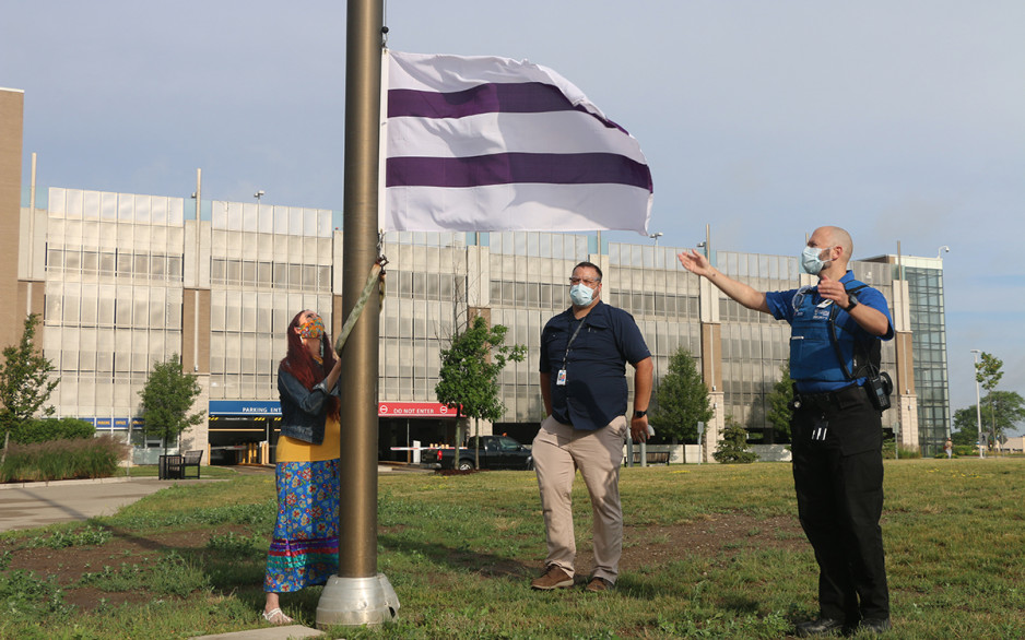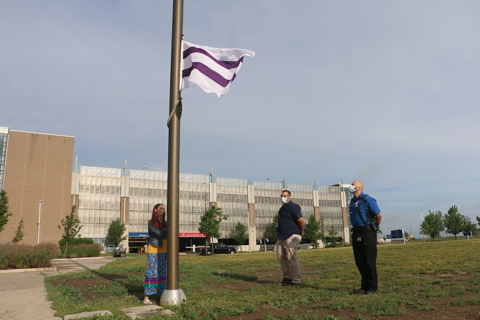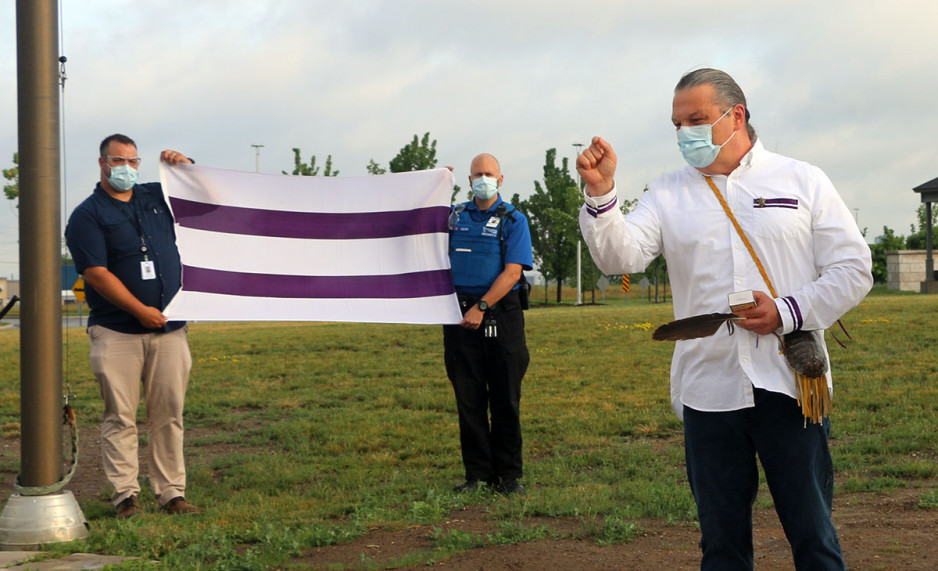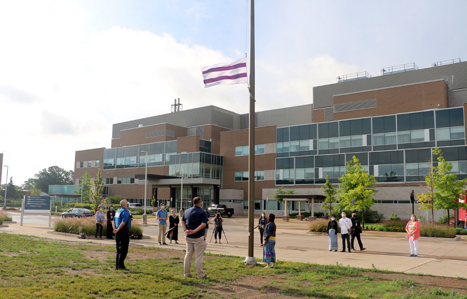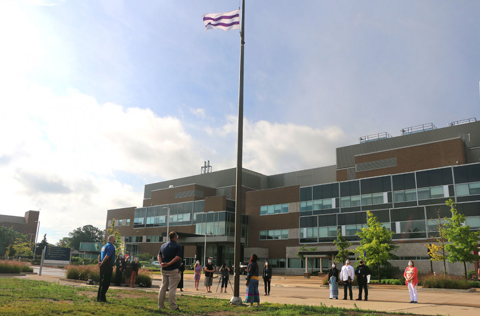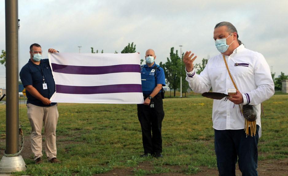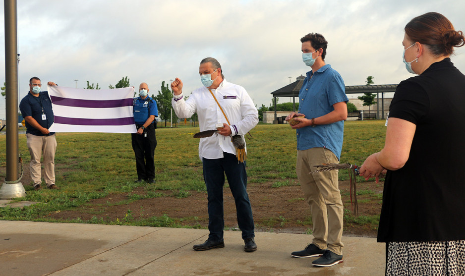 Jodi Younger, St. Joseph’s Vice President of Patient Care and Quality who was also in attendance at the flag raising and added “As St. Joseph’s mental health care services work to address long-standing, systemic barriers to care for Indigenous Peoples, today’s recognition is just one step in signaling that our Biigajiiskaan Program is a place to receive culturally safe care.”