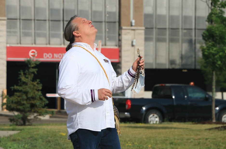 “There’s significance in flying the Wampum Flag at this hospital today,” says Bill Hill (Ro'nikonkatste), project lead for the Biigajiiskaan Program, and who led a smudging ceremony before the flag was raised. “It signals that we’re working together, in harmony, to provide access to culturally safe care for the Indigenous community.”