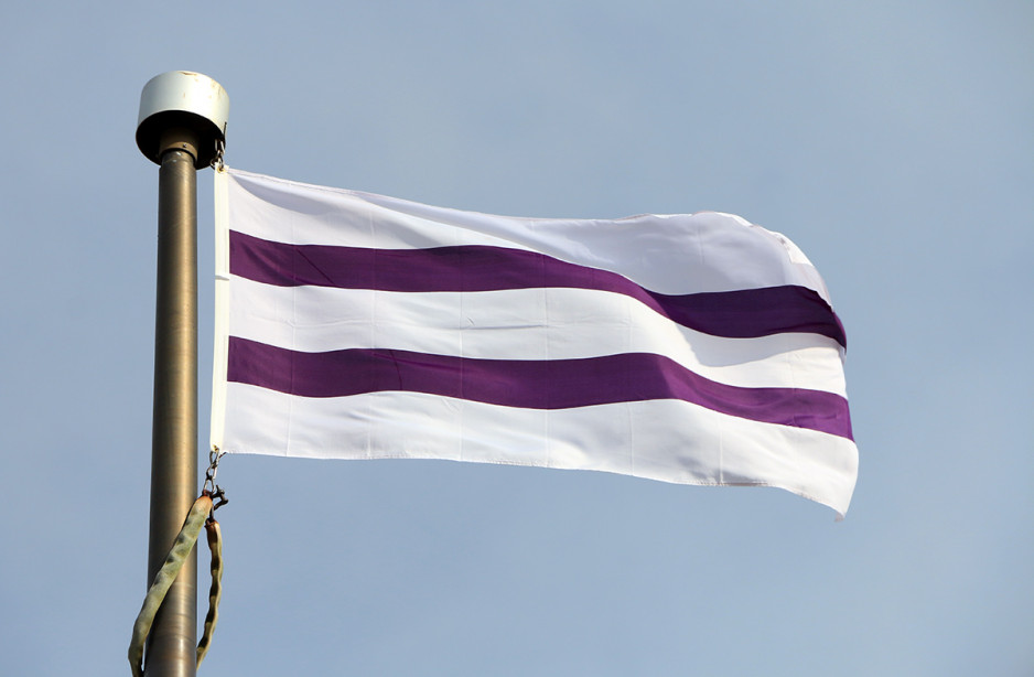 The three white sections of the flag represent peace, friendship and trust, while the two purple lines symbolize vessels; one a canoe, the other a sailing ship, travelling side-by-side. The original treaty recognized that Indigenous peoples, their culture, laws and traditions were inside the canoe, while the culture, laws and traditions of the settlers were in the sailing ship. It was a commitment that the nations would travel peacefully together, but not interfere with one another.