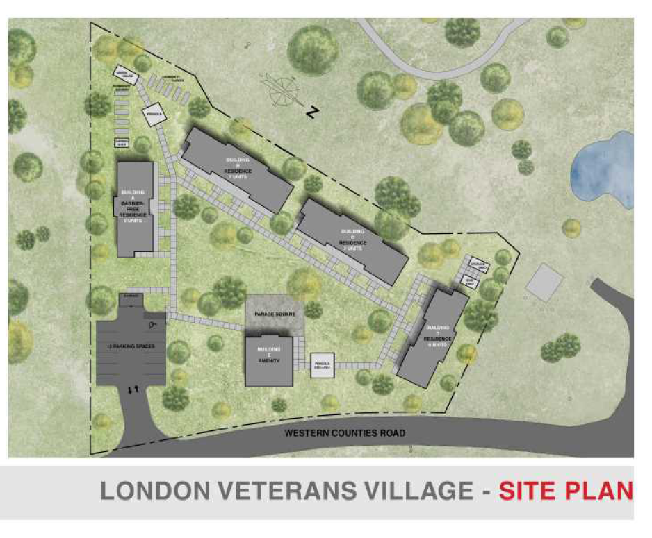 The project, referred to as the London Veterans Village, will feature 25 tiny homes, arranged in an inward facing ‘barracks format’ to encourage peer-to-peer support, a garden, recreation space, resource centre and on-site social services.