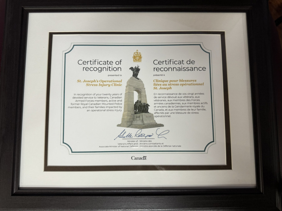 Veterans Affairs Canada helps St. Joseph’s Operational Stress Injury Clinic celebrate 20 years of service to community