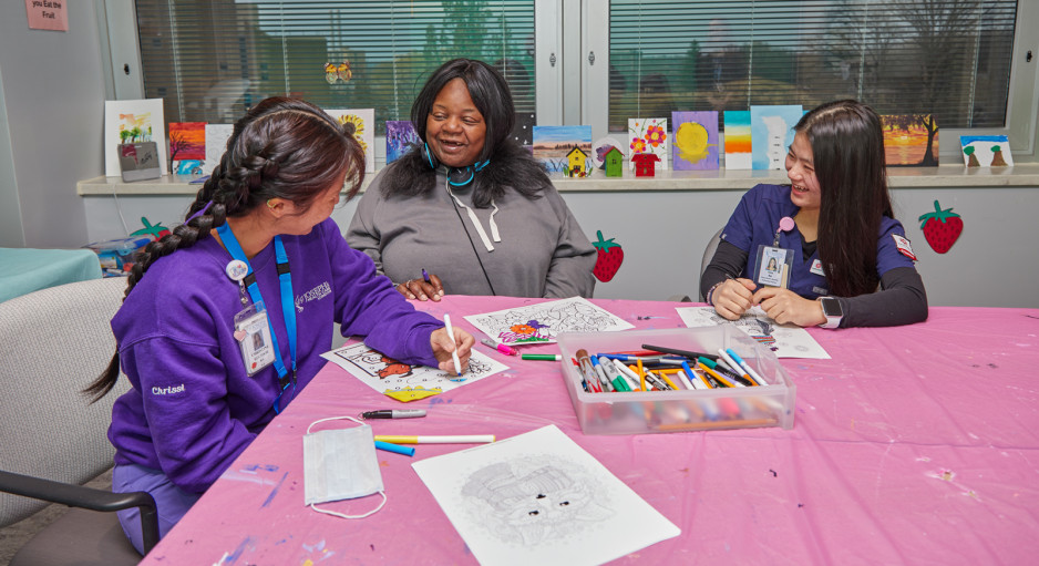 “The nurses I work with on the unit have been great mentors and teachers,” says Riley. “They take the time to make sure I understand what’s happening or answer any questions I might have. This helps build my confidence when speaking with patients.”