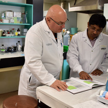 Dr. Michael Motolko (left), Chair/Chief, Department of Ophthalmology, and Dr. Sunil Parapuram (right).
