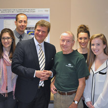 Members of the study’s research team, from left to right: Korbin Blue, Research Assistant (Co-op Student); Yanina Sarquis-Adamson, Lab Research Assistant; Frederico Faria, Post-Doctoral Fellow; Dr. Montero Odasso, Director, Gait and Brain Lab; research participant; Alanna Black, Lab Research Coordinator; Stephanie Cullen, Research Assistant (Undergraduate Student); and, Navena Lingum, Research Assistant (Master Student).