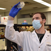 A study from Lawson and Western illustrated how the gut microbiome interacts with an oral medication in prostate cancer patients, suggesting bacteria in the gut play a role in treatment outcomes. The findings highlight how the drug abiraterone acetate is metabolized by bacteria in the gut to reduce harmful organisms while promoting those that fight cancer. The research team suspects this is one of many examples of how the microbiome influences our response to medications. Read more.