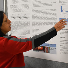 Ashrafunissa Janmohammad (above), Lawson research coordinator at Parkwood Institute’s Chronic Wound Management Clinic, was one of the poster presenters at the event. She presented on a study led by Lawson associate scientist Dr. David Keast, which assessed whether chitosan gelling fibre dressing could be effective in controlling bleeding after minor wound surgery. Chitosan is derived from chitin, the structural component of the cell walls of fungi and the shells of arthropods such as crabs, lobsters, shrimps and insects.